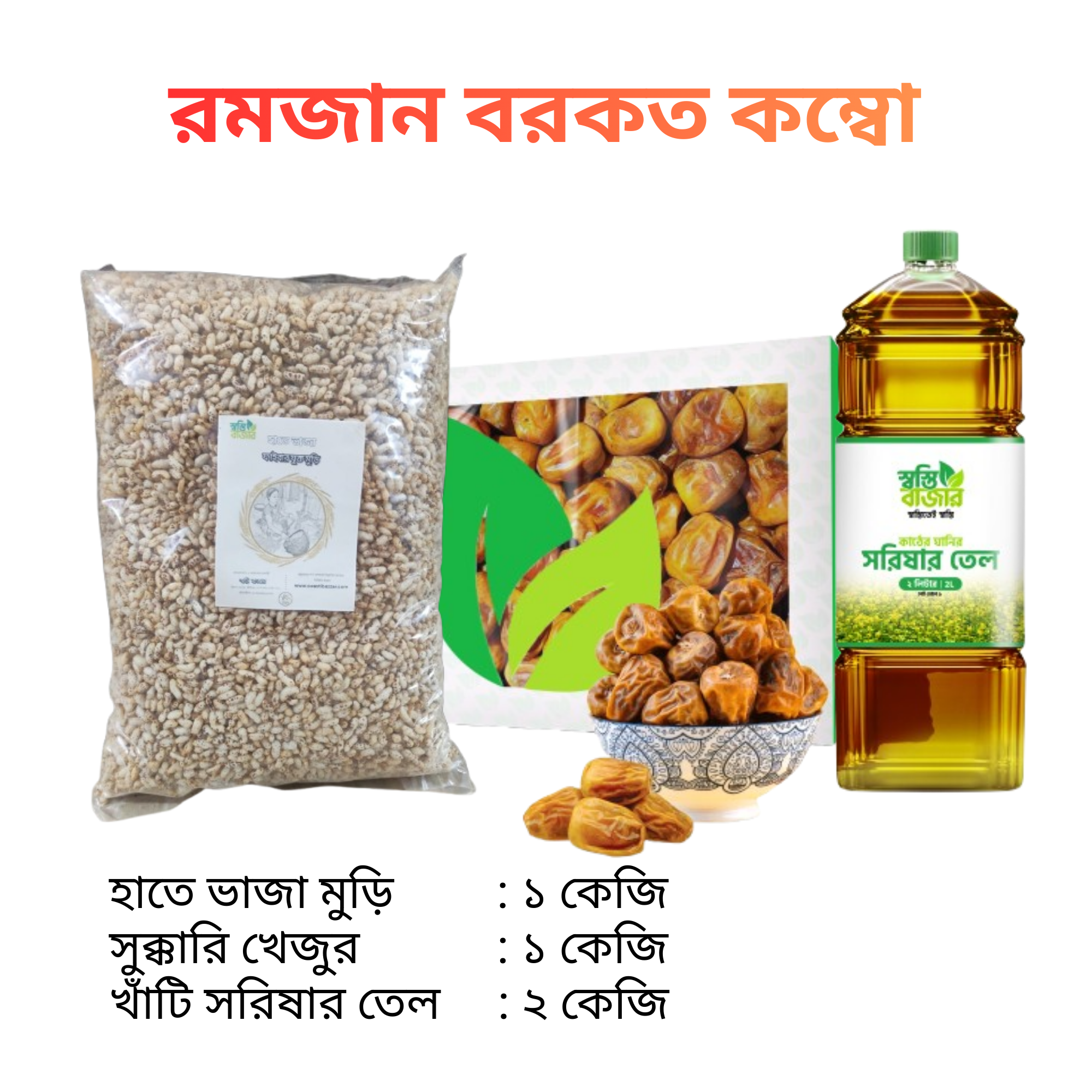 রমজান বরকত কম্বো – হাতে ভাজা ফাইবারযুক্ত মুড়ি, প্রিমিয়াম সুক্কারি খেজুর ও ২ লিটার সরিষার তেল